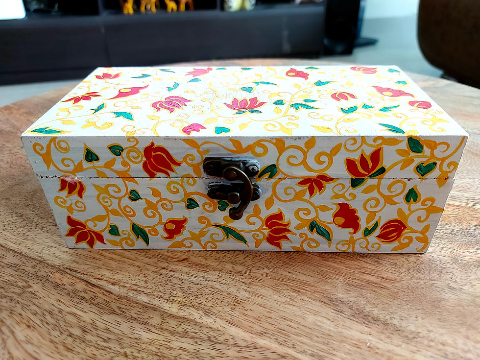 Add a touch of heritage to your accessories collection with our hand-painted Madhubani bags, boxes, and jewelry—where art meets style!